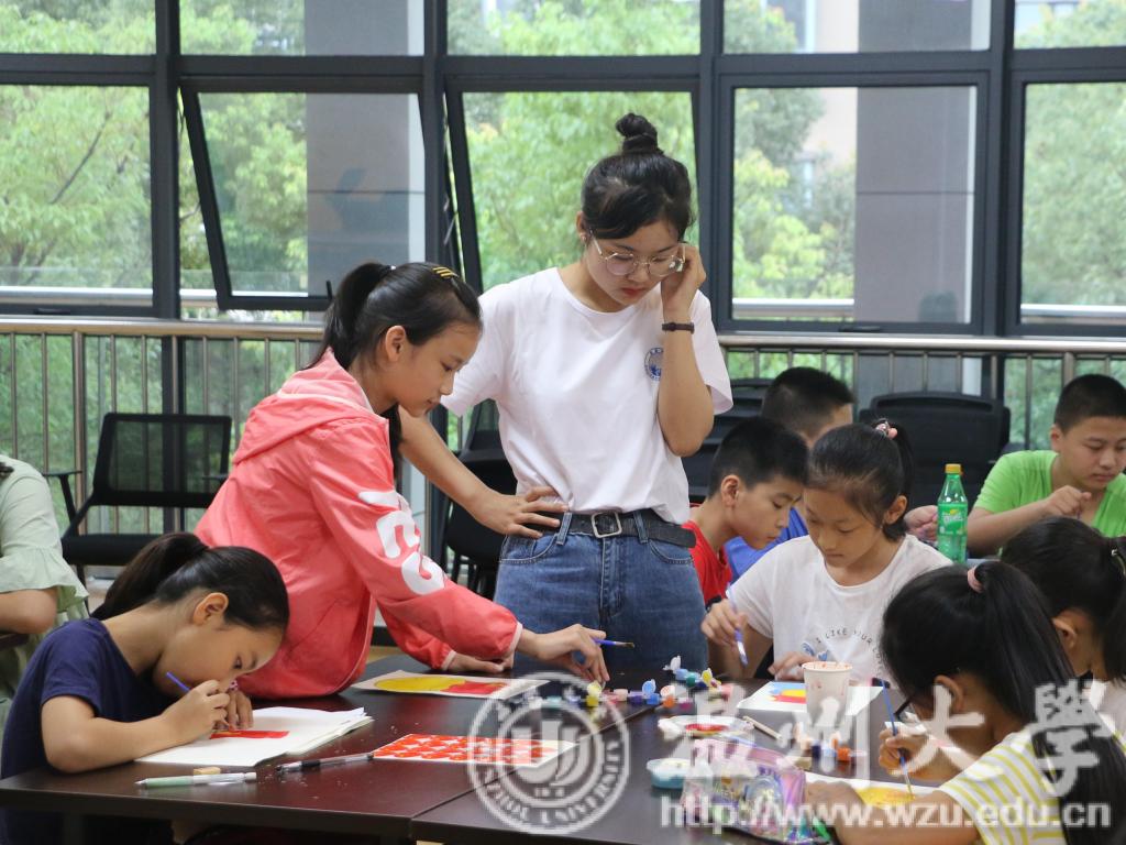 2019年7月,财神捕鱼 “青愿逐梦”实践队赴“瓯江红”温州市党群服务中心开展为期十五天的“瓯江红”公益夏令营,“老师,肌理画太好玩儿啦!”“老师,老师!你看我画给祖国母亲的画好不好看!”......为宣扬红船精神,传承温州经典文化,促进温州“新二代”的社会融入。