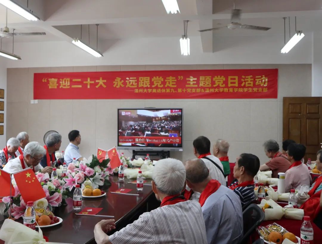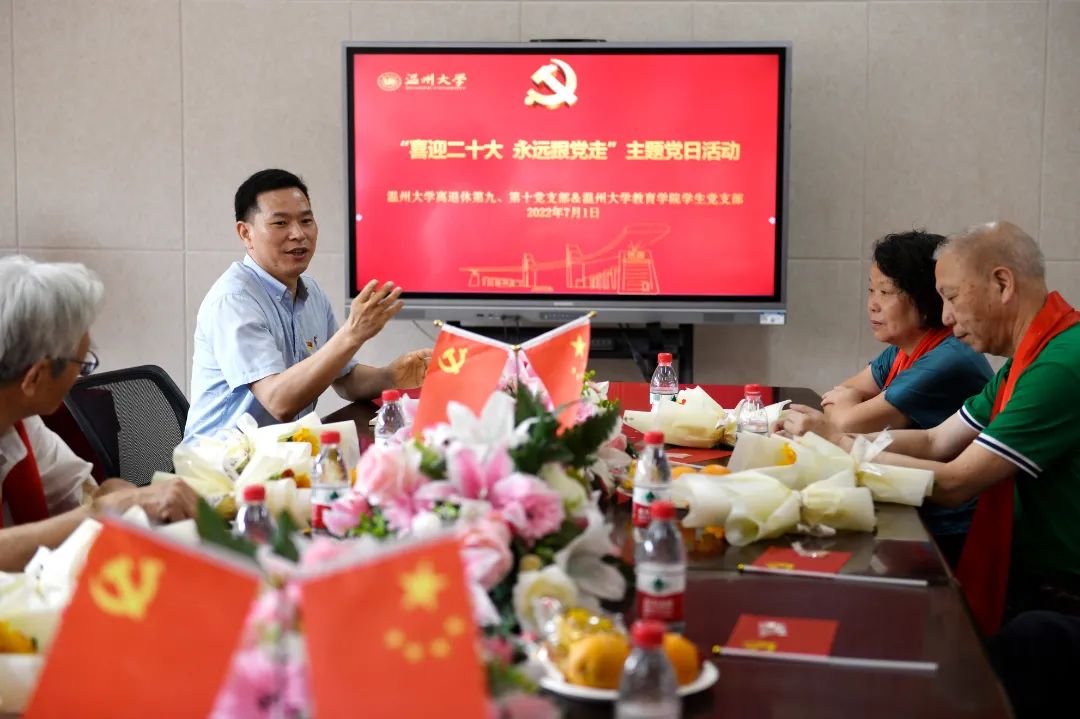 为迎接党的二十大胜利召开,庆祝中国共产党成立101周年,深入学习贯彻浙江省第十五次党代会精神,重温党的光辉历史,教育引导广大党员增强党性,永远跟党走,奋进新征程,2022年7月1日,财神捕鱼 离退休第九、第十党支部联合财神捕鱼 党支部举行“喜迎二十大 永远跟党走”主题党日活动。财神捕鱼 原党委书记刘万伦,财神捕鱼 原副校长吴挺、潘成安,财神捕鱼 副校长、党委委员潘玉驹,“光荣在党50年”纪念章获得者张秀荣,财神捕鱼 党委书记、副院长何毅,财神捕鱼 离退休第十党支部书记黄小萍,财神捕鱼 党委副书记、纪委书记彭小媚,财神捕鱼 党委副书记章园园等领导,师生党员代表一同参加了本次活动。