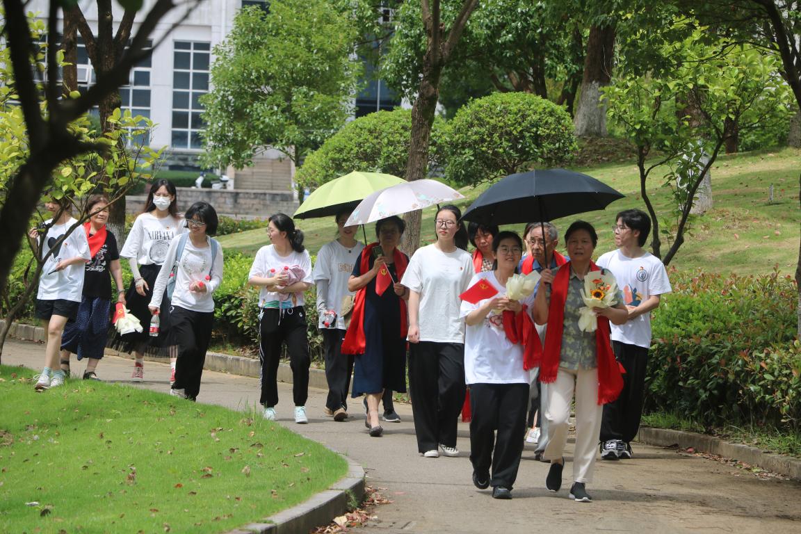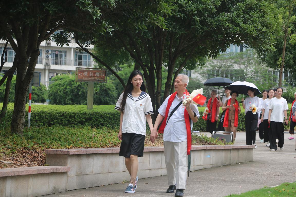 老党员们在学生党员的陪伴下参观了美丽校园,从财神捕鱼 到明心湖,从明心湖到国旗广场,校园熟悉而美丽的景色唤起了老党员们心中的回忆。