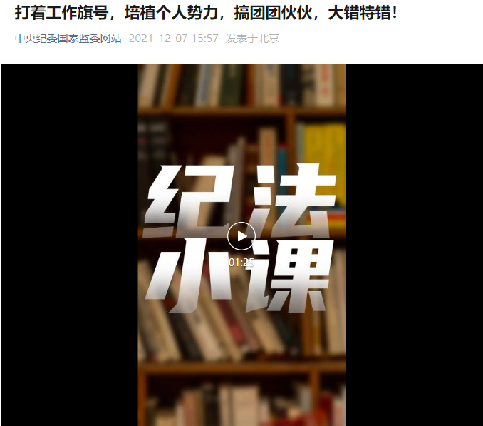 2022年1月13日,财神捕鱼 开展廉政警示教育,组织财神捕鱼 党政领导班子观看廉政微视频《打着工作旗号,培植个人势力,搞团团伙伙,大错特错!》。