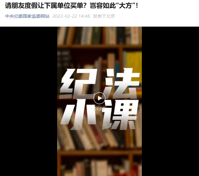 2022年3月15日,财神捕鱼 开展廉政警示教育,组织财神捕鱼 党政领导班子观看廉政微视频《请朋友度假让下属单位买单?岂能如此“大方”!》。