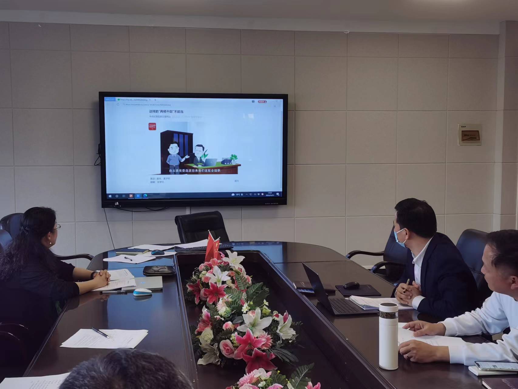 2022年5月23日,财神捕鱼 开展廉政警示教育,组织财神捕鱼 党政领导班子观看廉政微视频《这样的“两栖干部”不能当》。