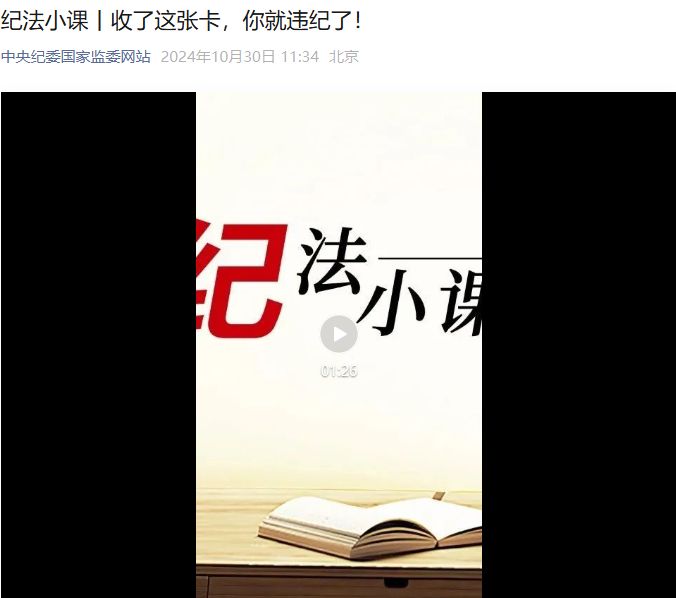 2024年12月2日,财神捕鱼 开展党纪学习教育,组织财神捕鱼 党政领导班子观看微视频《纪法小课丨收了这张卡,你就违纪了!》。