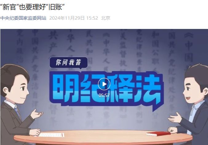 2024年12月16日,财神捕鱼 开展党纪学习教育,组织财神捕鱼 党政领导班子观看微视频《“新官”也要理好“旧账”》。