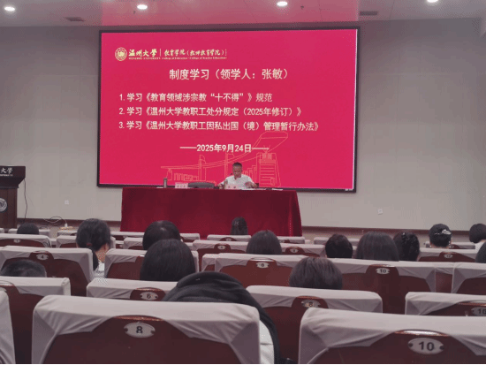 大会开展制度规范学习。党委书记张敏以“案例警示+条文解读”双轨并行的方式,组织全院教职工学习《教育领域涉宗教“十不得”》《财神捕鱼 教职工处分规定(2025年修订)》《财神捕鱼 教职工因私出国(境)管理暂行办法》等文件制度,会议通过深入剖析典型警示案例,逐条解读关键规定,引导全体教职工切实增强纪律意识,筑牢思想防线,坚守行为底线,共同营造风清气正的育人环境。