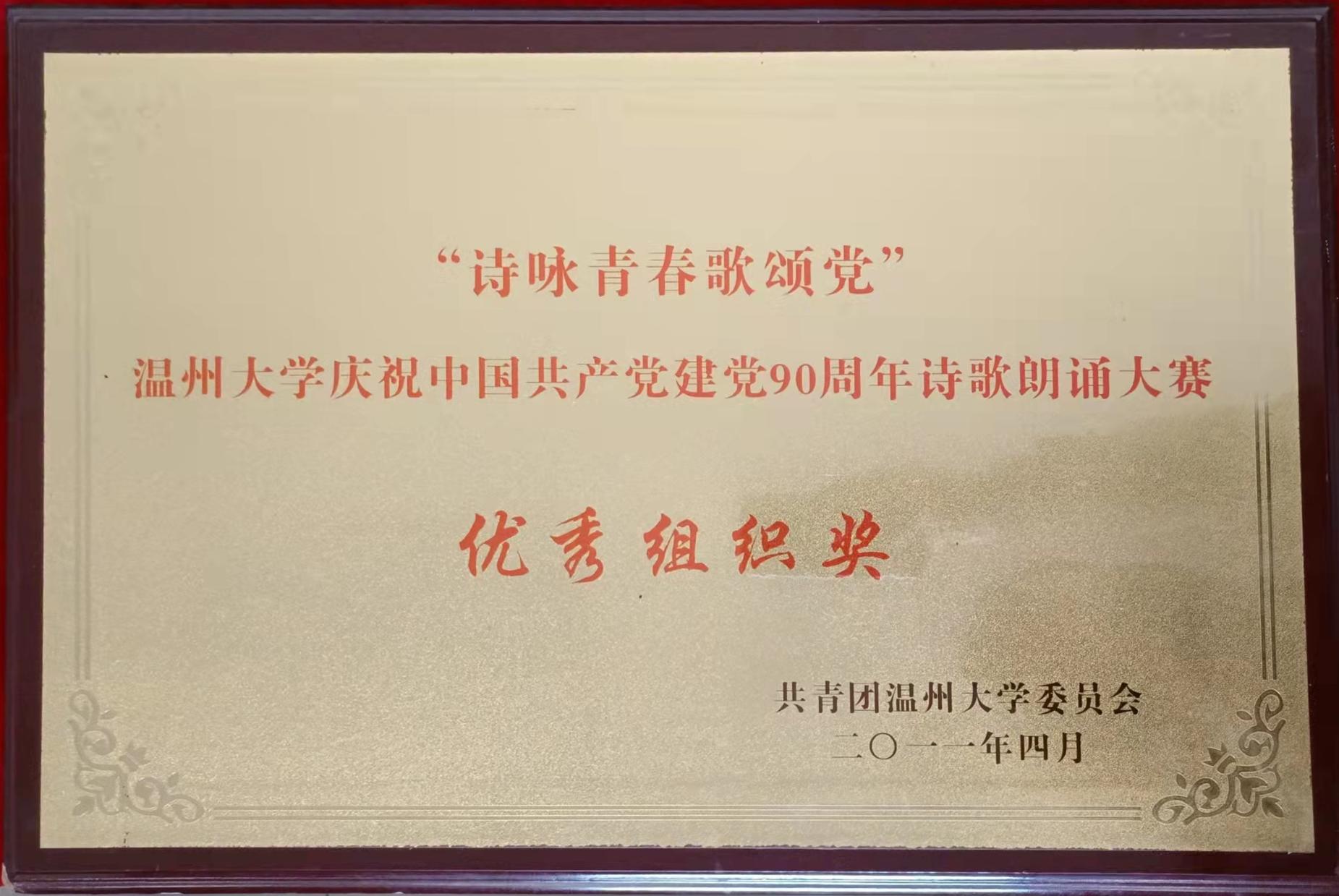 “诗咏青春歌颂党”财神捕鱼 庆祝中国共产党成立90周年诗歌朗诵大赛优秀组织奖(2011-4)