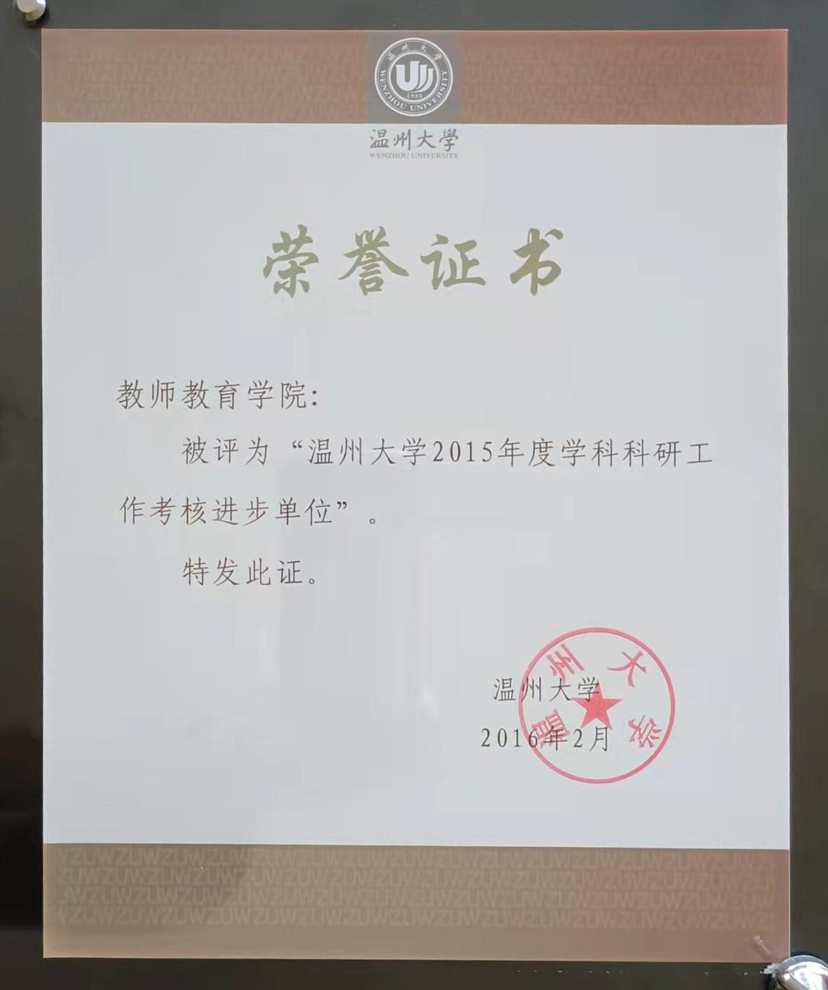 财神捕鱼 2015年度学科科研工作考核进步单位(2016-2)