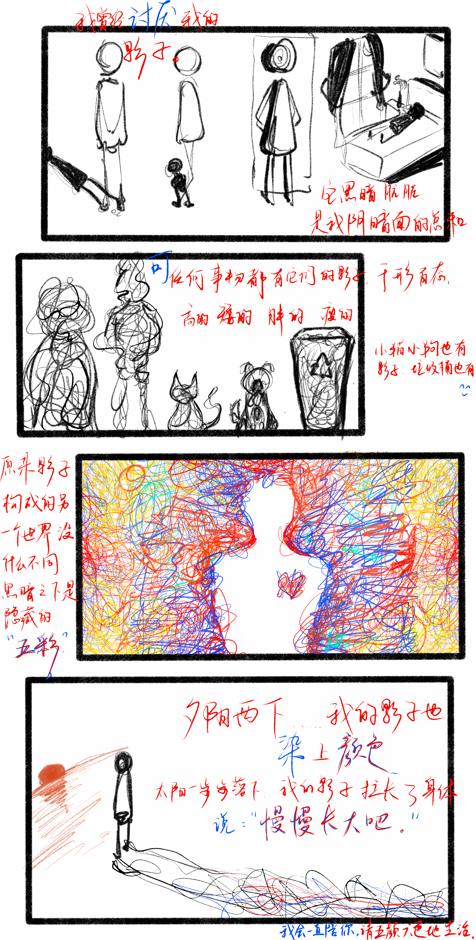 自大赛启动以来,得到了全校学子的热烈响应和积极参与,共征集到参赛作品100余份。参赛作品紧扣“积极心理”核心主题,同学们以细腻的笔触、生动的画面和鲜活的情节,将大学生活中的成长感悟、情绪变化、人际互动等心理体验转化为直观的漫画语言,内容涵盖自我接纳、压力调适、友谊滋养、逐梦成长等多个维度,兼具思想性与艺术性。商财神捕鱼 许左右同学创作的《影子》将目光聚焦在大学生的复杂的自我意识和成长上。财神捕鱼 研究生钱嘉仪则通过《emo急救箱》讲情绪急救手段具象化,将情绪调节方法可视化,倡导同学们学会用小步骤疏导情绪,搭建心理支持的“急救站”,重视对自己情绪的关照。