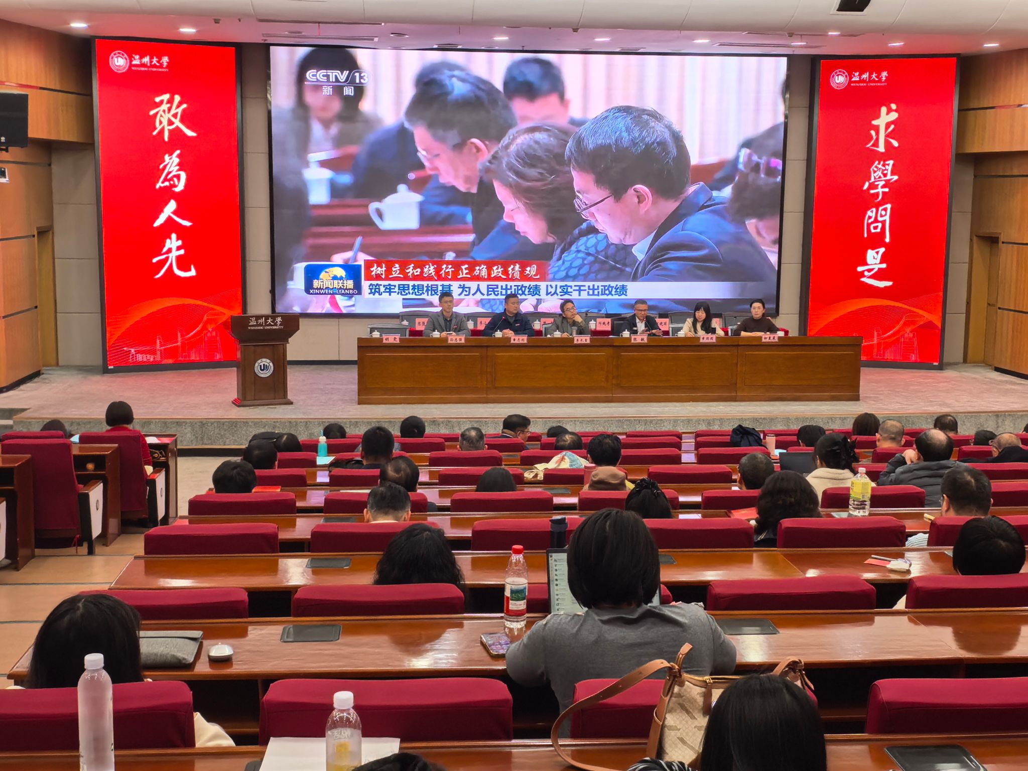 会议开展政治理论专题学习。为深入推进思想建设与廉洁文化教育,全体教职工观看两部专题教育视频。在树立和践行正确政绩观方面,大家视频学习《筑牢思想根基 为人民出政绩 以实干出政绩》,强化为民初心、秉持实干的作风。在廉洁文化教育方面,大家视频学习《清官史话》,了解明代清官、温州知府文林断案公正、为官清廉的事迹,以历史典范传递廉洁理念、厚植崇廉尚洁环境。两部学习视频主题鲜明,切实发挥思想引领、廉洁教化作用,为广大教职工树立和践行正确政绩观,筑牢思想防线、涵养廉洁品格提供了生动鲜活的学习素材。