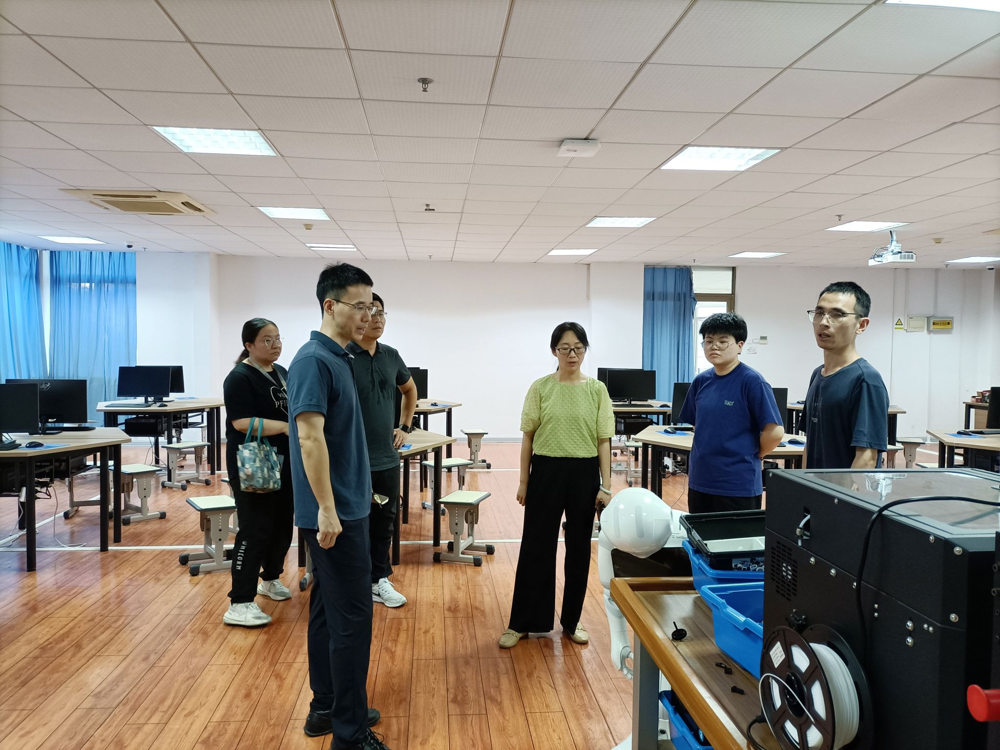 会后,孙忠强副院长深入实验中心各实验室,对实验教学、课程任务、教具配备、实验室设备及仪器的运行状况等方面进行了逐一检查,并特别关注了水、电、消防设施的安全性,以及实验室分级分类管理办法的执行情况。检查过程中针对存在问题,提出整改方案,现场协调解决,为本学期实验教学工作的顺利进行保驾护航。